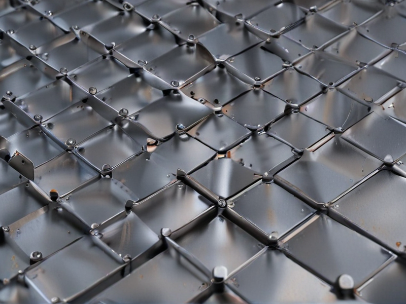 Riveted metal sheet with sturdy construction and secure fastening for strength and durability. Perfect for industrial applications requiring a strong and reliable material for various projects.