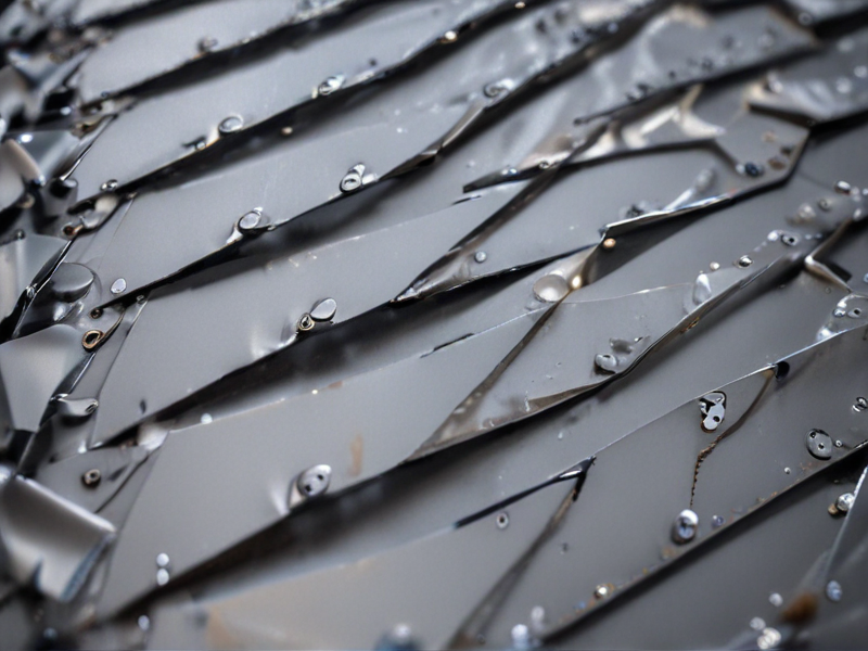 A riveted metal sheet is a strong and durable material often used in construction and manufacturing. The overlapping metal plates are joined together with rivets for added strength.